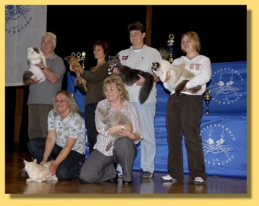 Wir haben in diesem Jahr leider nur sehr wenige Katzenausstellungen besucht; denn es war nie viel Zeit dafür übrig - und so haben wir auch relativ spät und kurz entschlossen hier gemeldet. (Danke Manu, dass Du Melinda und mich so mehr oder weniger dazu überredet hast!) Lohmar war eine sehr schöne Ausstellung mit (lt. Verein) über 300 gemeldeten Katzen, davon ca. 70 Briten. Die Ausstellung fand in der Jabachhalle, mit angenehmer Geräumigkeit, in wirklich guter und entspannter Atmosphäre und netten Leuten statt. Schon gleich bei der Begrüßung, ich glaube durch Frau Hoebener, viel mir auf, dass ich es zum ersten Mal gehört habe, dass nach Ausstellungsanfängern gefragt wurde und diesen dann auch Unterstützung und Hilfe angeboten worden ist - eine tolle, nachahmenswerte Idee!!
