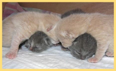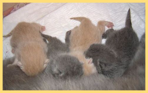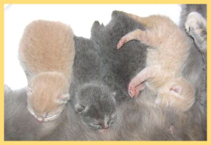 Wir sind sehr stolz und überglücklich die Geburt unserer K-Babys bekannt geben zu dürfen! In den frühen Morgenstunden des 19.05.2008 erblickten 4 Kitten aus der Verpaarung von GIC Harmonie en bleue-creme de Sainte Fare (Luna) & IC OrangeBlue Tom-Tom das Licht der Welt!’ Wir freuen uns sehr über diese Babys; denn es werden die Letzten unserer Luna sein und es sind die Allerersten von Tom-Tom! Es sind zwei cream Jungen, ein blaues Mädchen und ein blau-cream Mädchen - wir sind soooo begeistert von ihnen!