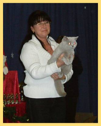 Da wir ja verreist waren, gebe ich das tolle Ausstellungsergebnis unserer “OrangeBlue Whoopy” erst heute bekannt: Whoopy (sie die Mama unserer Anjuli und eine Wurfschwester von unserer What´s Up “Buffy” und Winston) hat mit ihrem Sohn Aquila eine Ausstellung des KFB e.V. (angeschlossen dem 1.DEKZV) in Berlin besucht. Herzliche Gratulation von uns zu den super schönen Erfolgen: Whoopy hat ihren letzten CAC-Punkt (V 1) bekommen und ist jetzt ein CHAMPION! Sie hat BEST VARIETY über alle Blauen erhalten, wurde nominiert für BIS und hat BEST IN SHOW gewonnen und ausserdem bekam sie auch noch BEST OF BEST Kurzhaar! Ihr Sohn Aquila erhielt das CACJ, wurde BEST IN SHOW und BESTES JUNGTIER 6-10 Monate!!! WOW!!! Liebe Brit und lieber Enrico - da haben sich 900 km Fahrt ja nun wirklich gelohnt!! Wir gratulieren von hier aus ganz herzlich den “Huckleberry´s” und wünschen Euch weiterhin ganz viel Glück und Erfolg!!