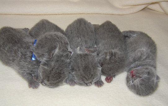 Endlich, am 67. Schwangerschaftstag begann die langersehnte Geburt unserer Lilly Lilly war mächtig dick, um nicht zu sagen Kugelrund. Das erste Baby erblickte um 0.05 Uhr das Licht der Welt, dicht gefolgt von zwei Geschwisterchen. Also 0.45 Uhr lagen bereits drei Kitten in der Wiege. Es folgten zwei Stunden Pause und dann in rascher Folge Baby No. 4 und 5. Baby Nr. 6 wurde um 05.45 Uhr geboren, gefolgt von Baby Nr. 7 um 6.50 Uhr. Ich war mir nicht sicher, ob schon alles vorbei war. Lilly selbst wirkte ruhig und entspannt, lag schnurrend bei ihren Kindern und ließ sie trinken.