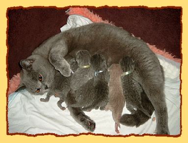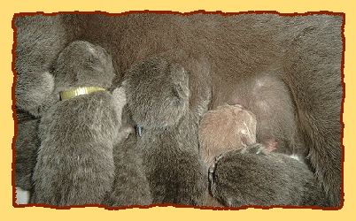 Bei dem lilac Baby sind wir uns beim Geschlecht noch etwas unsicher, ich denke aber, es ist ein Mädchen ... warscheinlich sehe ich immer einen Jungn in den lilac Kitten, weil ich so gern einen hätte ... |