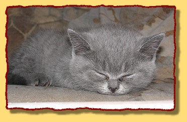 [Home] [News 2005] [Kontakt] [Kater] [Katzen] [Kitten] [Familienplanung] [Über uns] [Allgemeines] [Links] [Gästebuch] |
